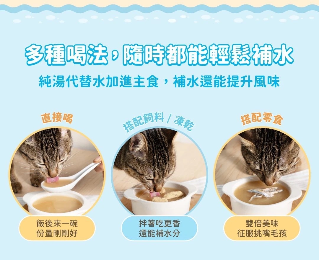 • 特殊湯質地,讓貓喝湯的效率加倍