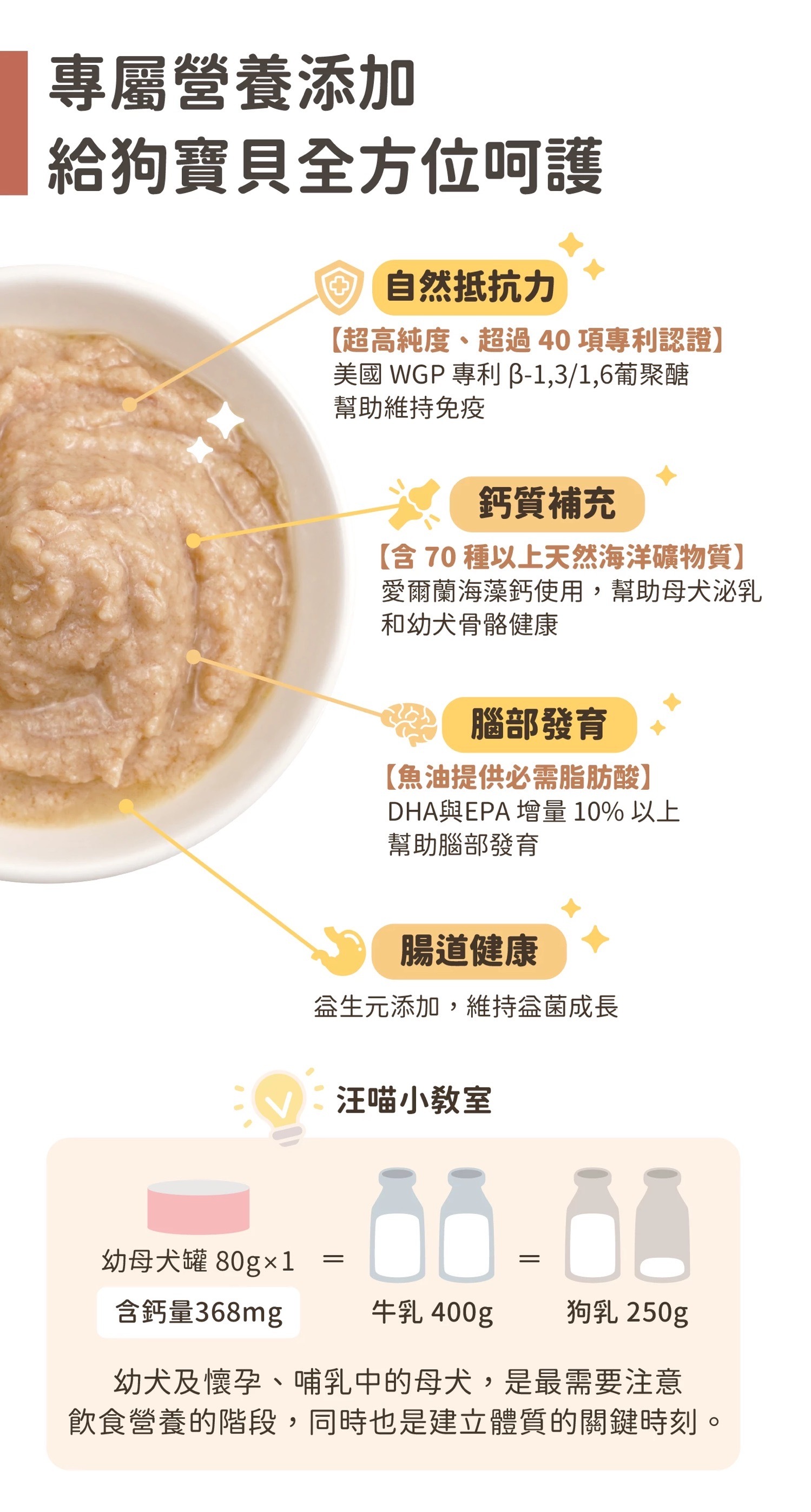 適合幼犬、哺乳孕犬、術後犬作營養補充