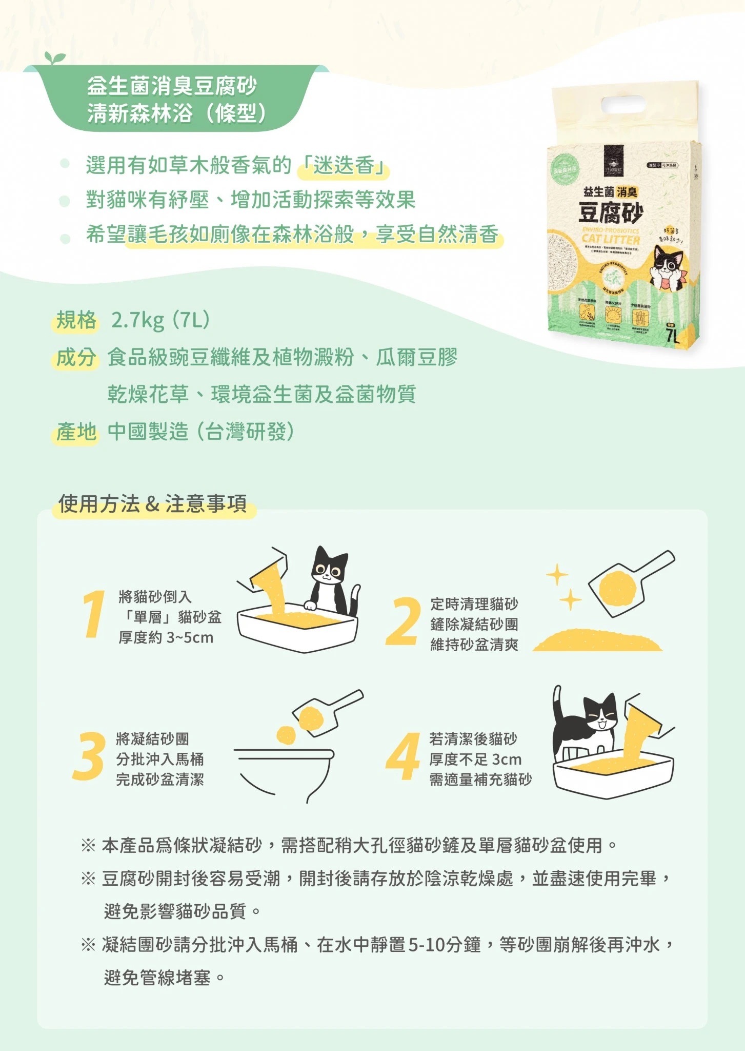 • 凝結溶水最適比,好鏟不散塊、可沖馬桶