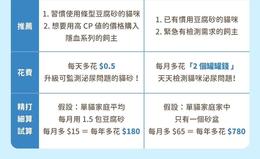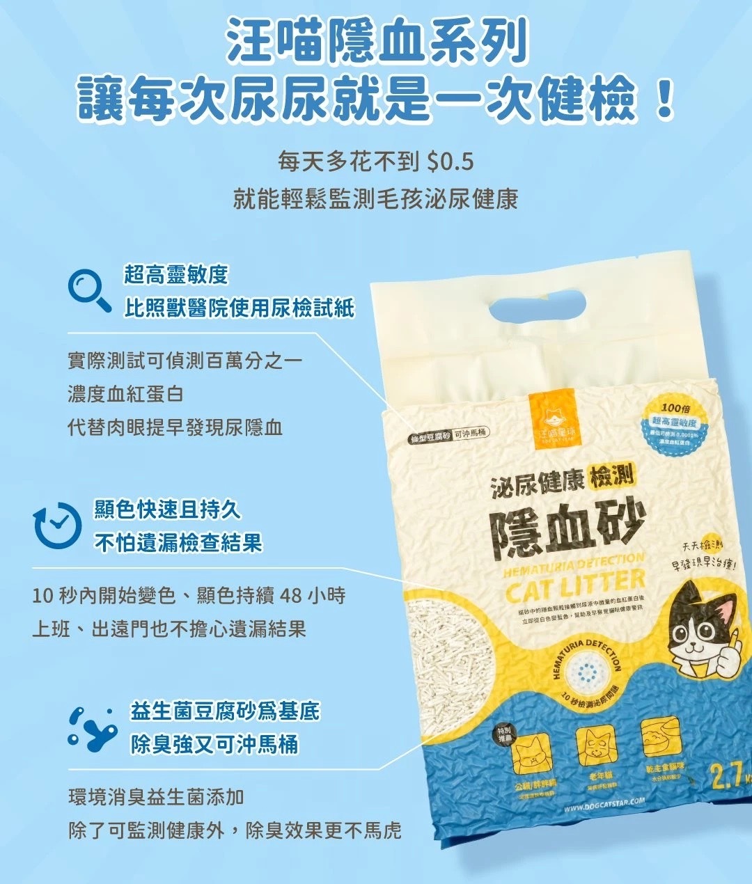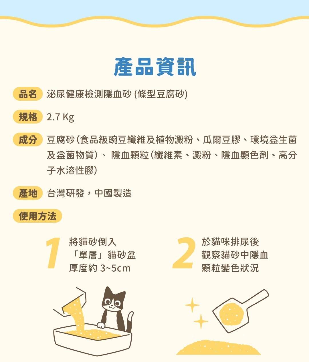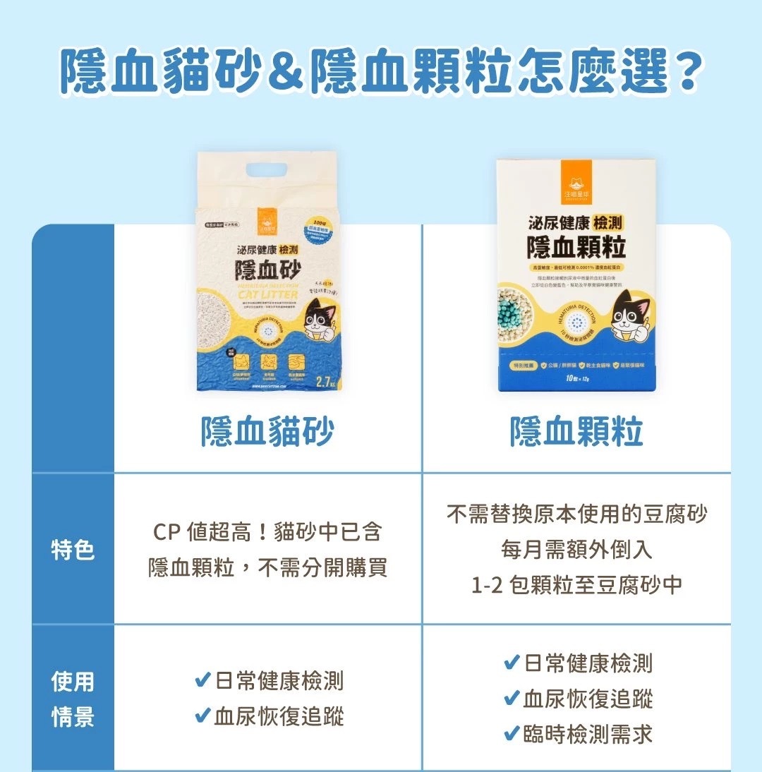 ☑ 隱血砂:推薦給平時就在使用豆腐砂的貓咪,CP值高!