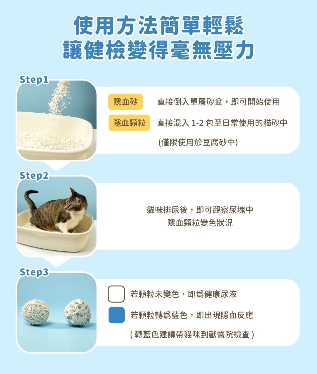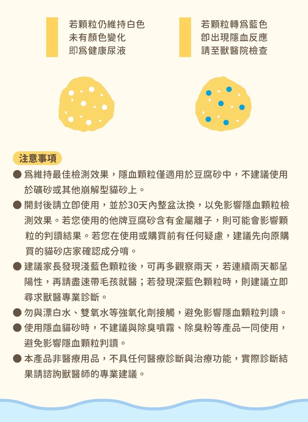 ※ 隱血顆粒僅建議使用於豆腐砂中