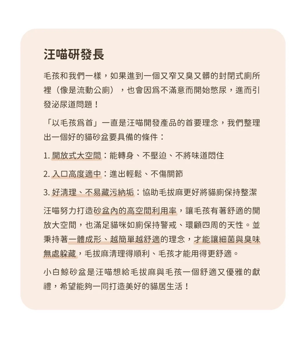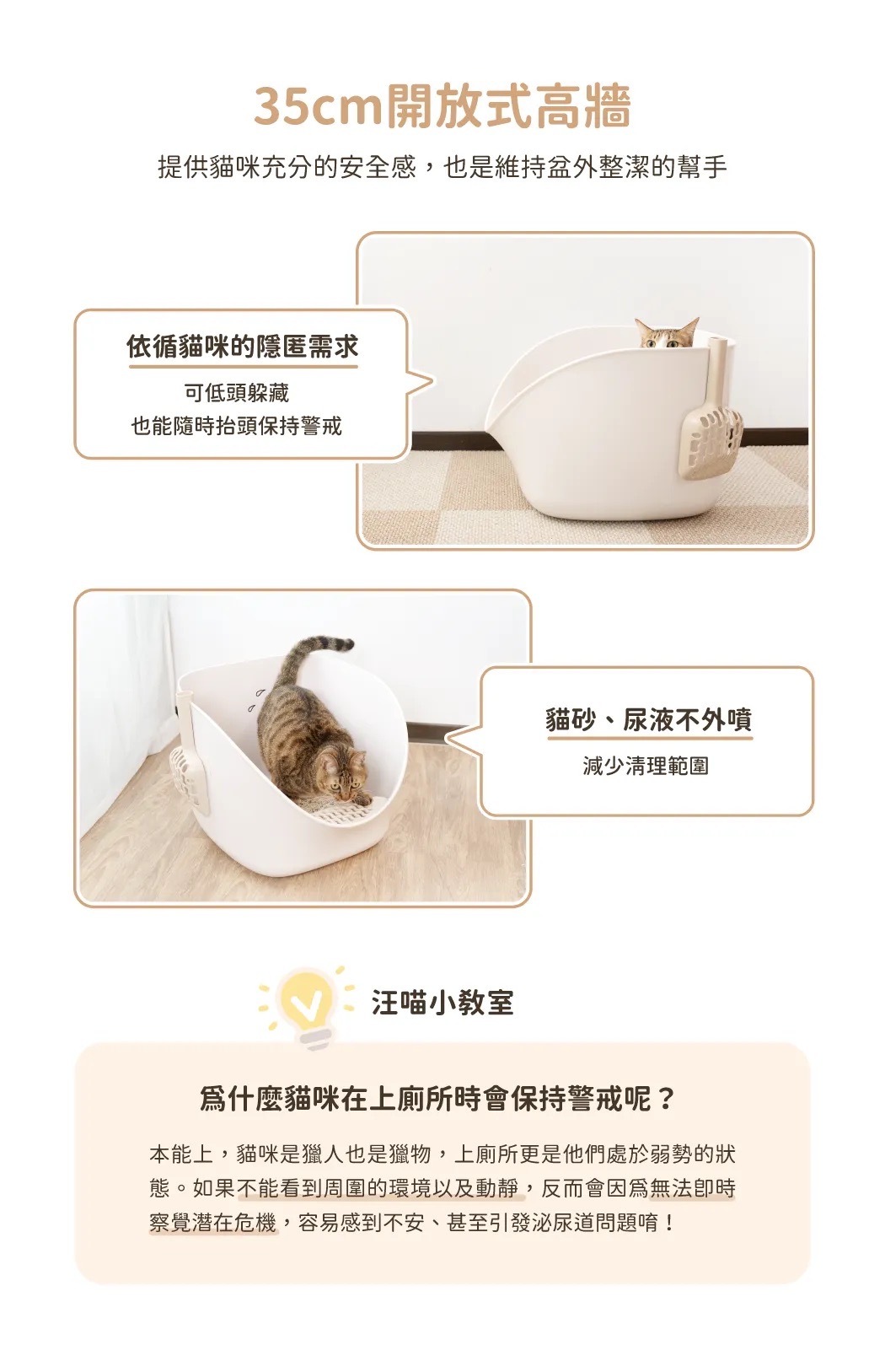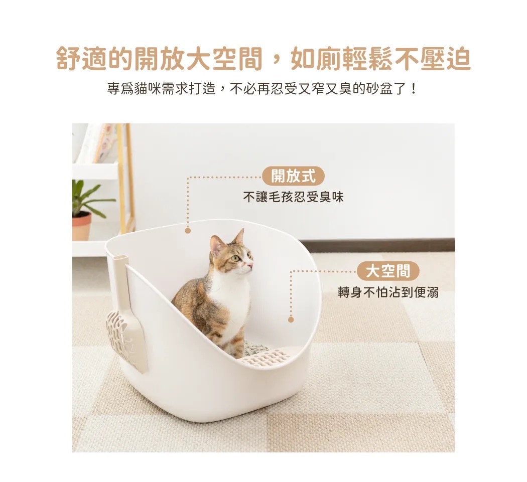 • 開放大空間,符合貓咪天性,如廁不壓迫