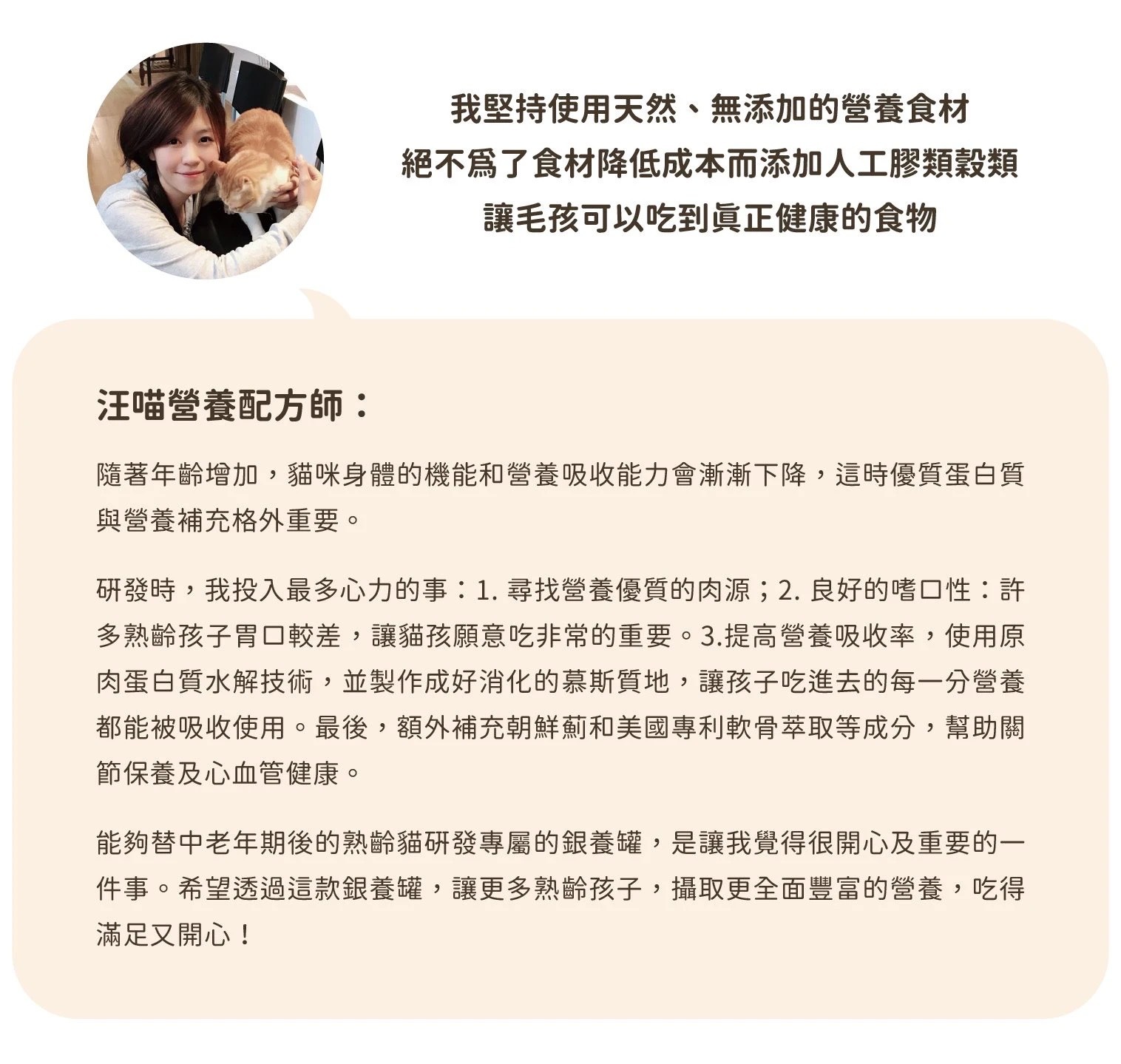 • 老貓專屬營養設計,關節、腦部及心血管營養補充