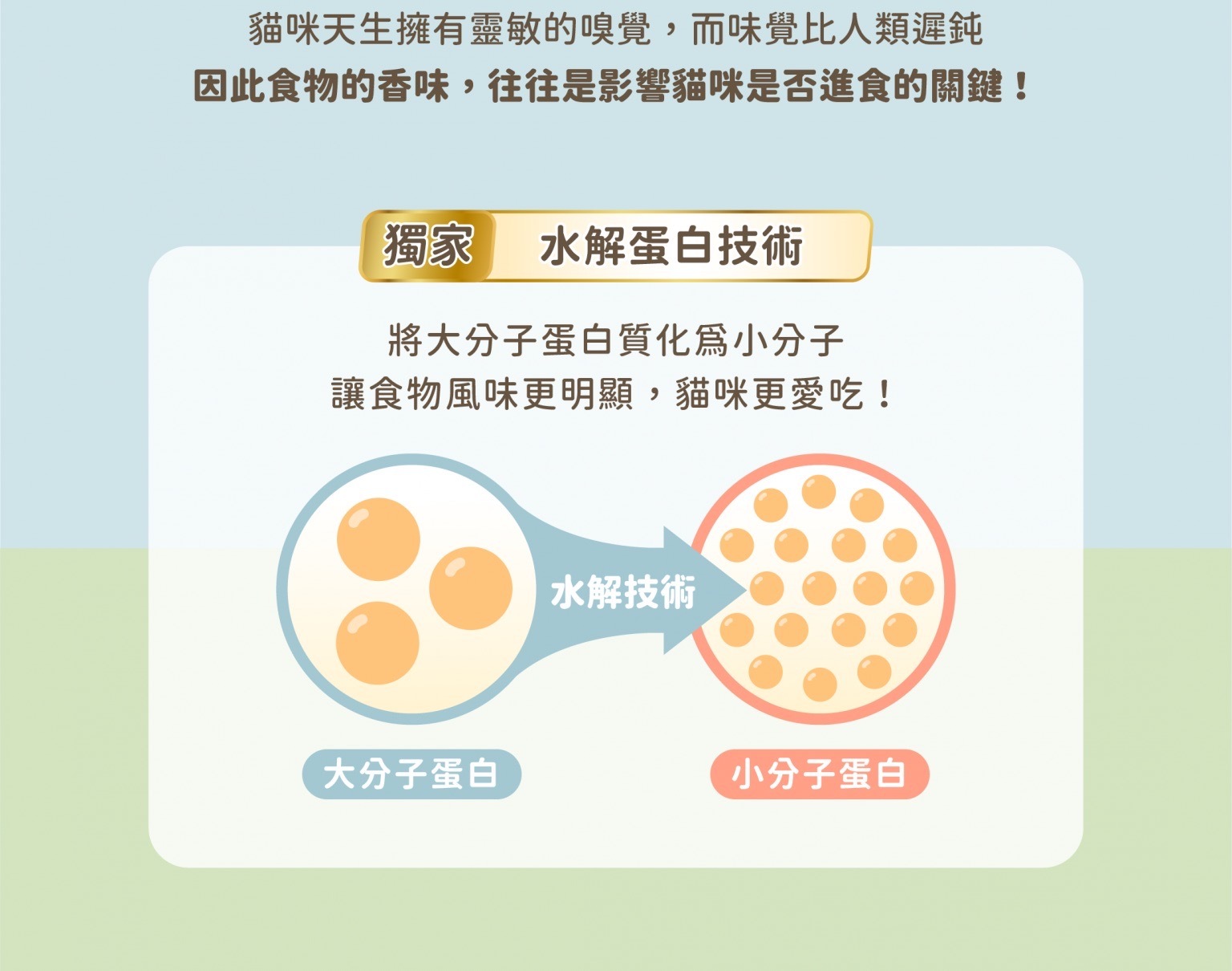 • 美味食材×水解技術,肉香濃郁,嗜口性高!