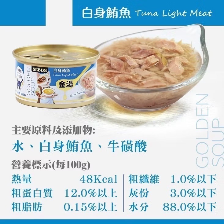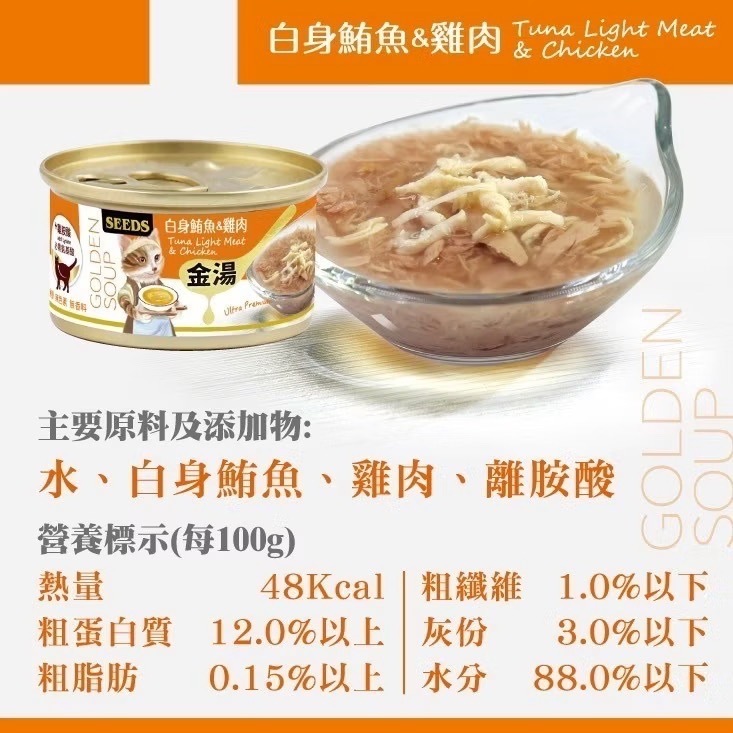 ● 原料單純 只有鮮雞、白身鮪魚+水