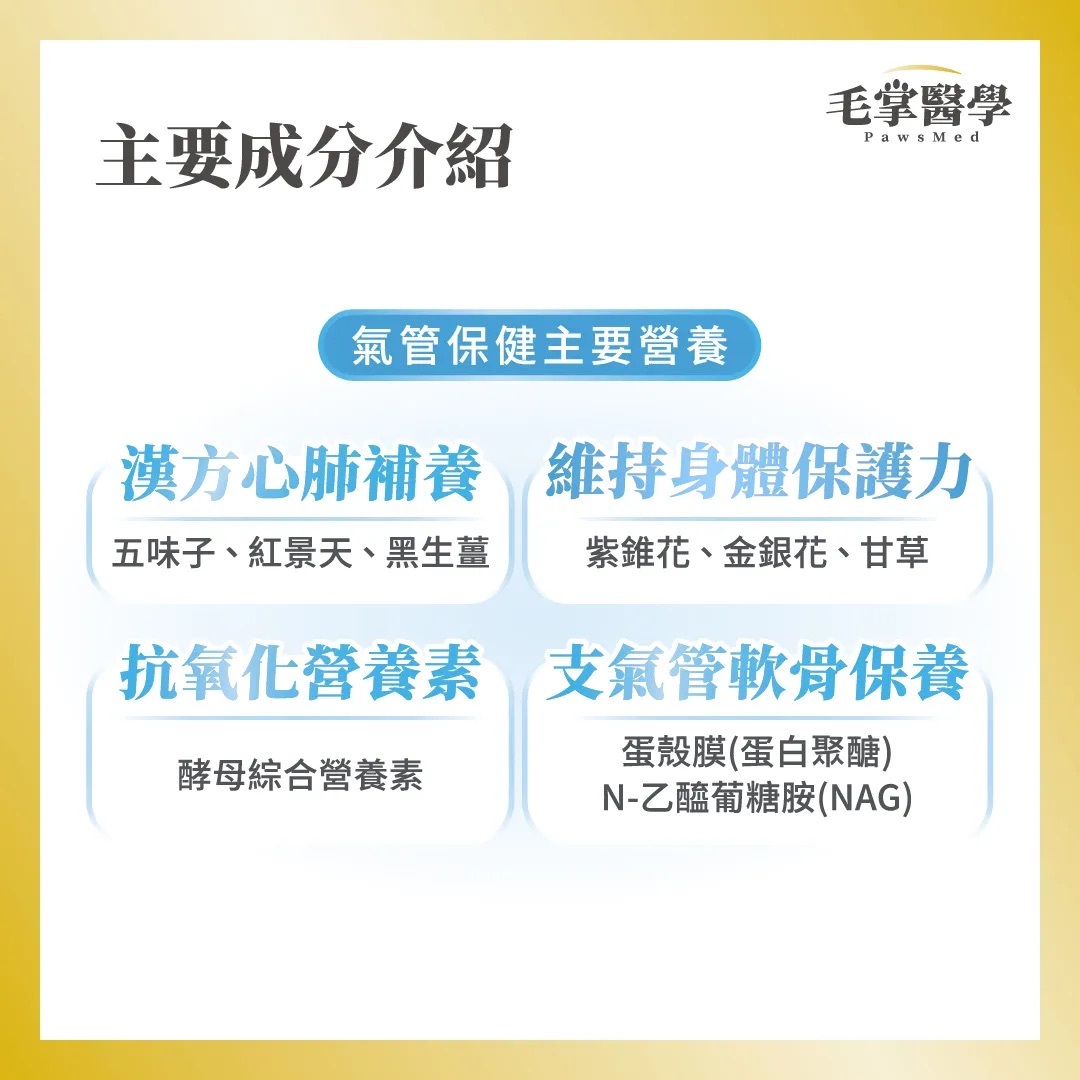 毛掌醫學狗狗呼吸道氣管順暢保養粉,是專為狗狗設計的呼吸道保健食品,