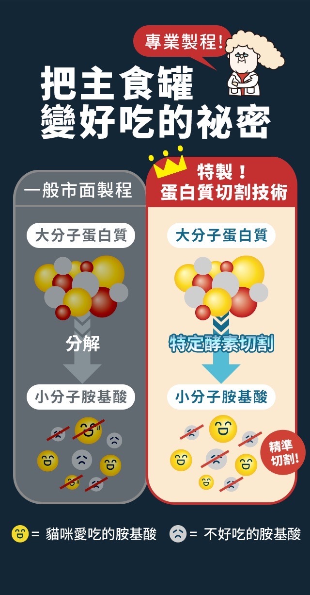 ▸把主食罐變好吃的秘密:專業蛋白質切割技術