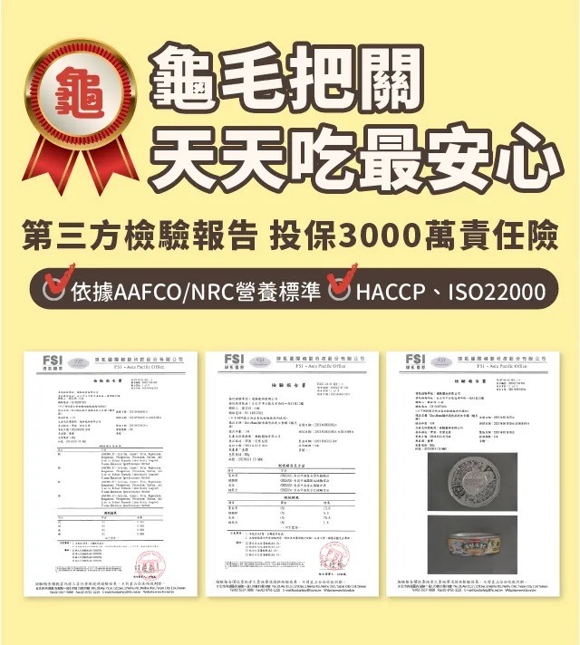 ☑依據AAFCO/NRC營養標準;HACCP、ISO22000安心雙認證