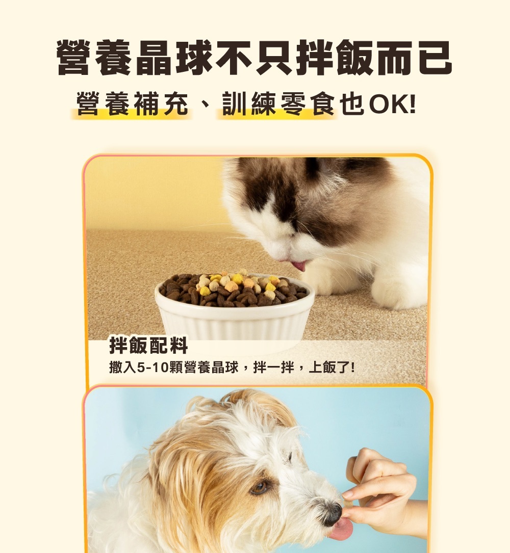*營養晶球採用天然食材,些微尺寸與顏色差異屬自然現象,請安心使用。