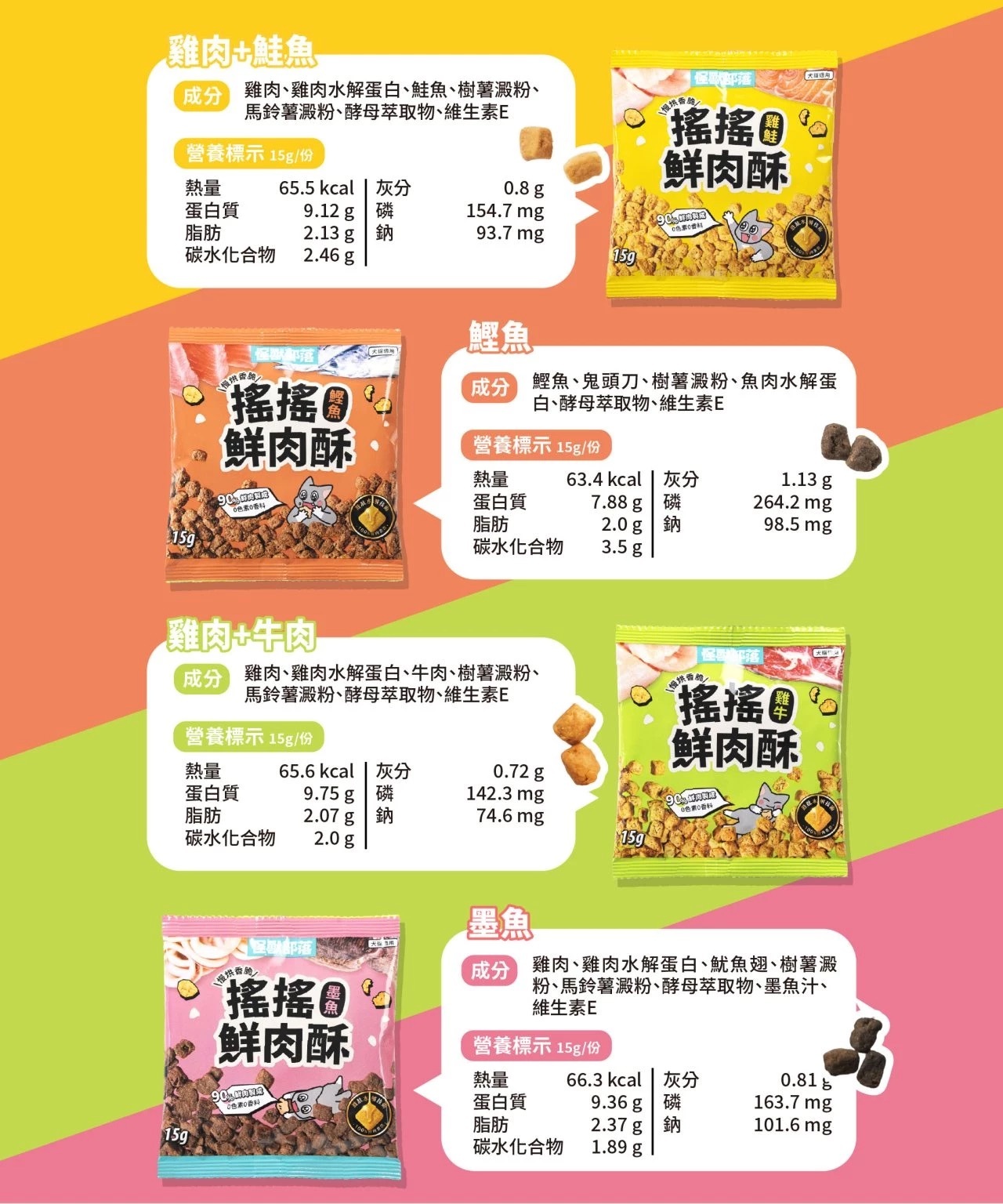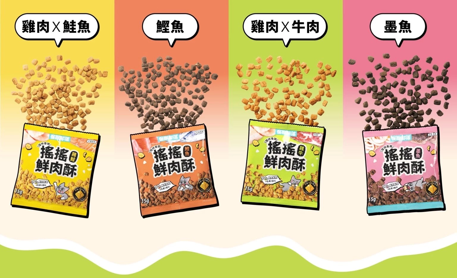 ※ 一串4包,口味分別為:雞肉鮭魚、鰹魚、雞肉牛肉、墨魚(無單包販售)
