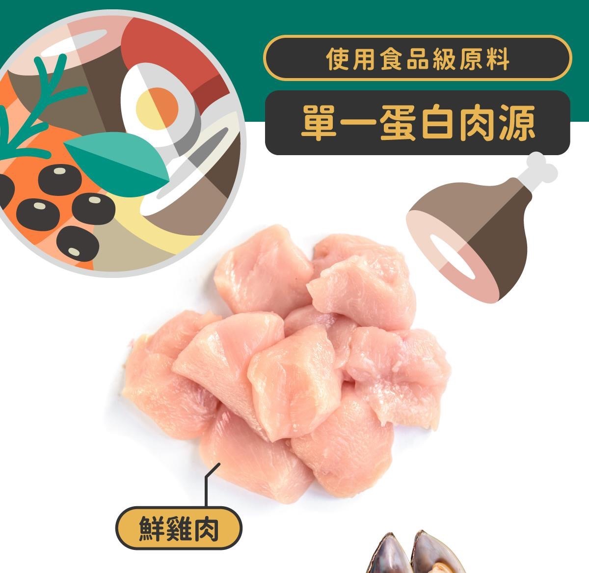 2.單一動物性源(雞肉)和易消化的碳水化合物