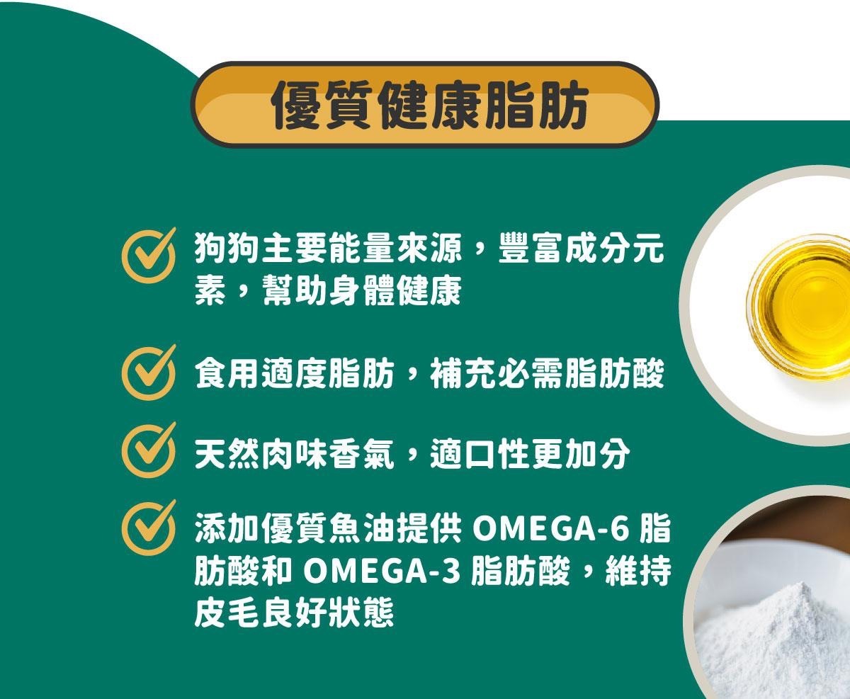 4.添加優質魚油提供omega-6脂肪酸和omega-3脂肪酸卵磷脂,維持皮毛良好狀態