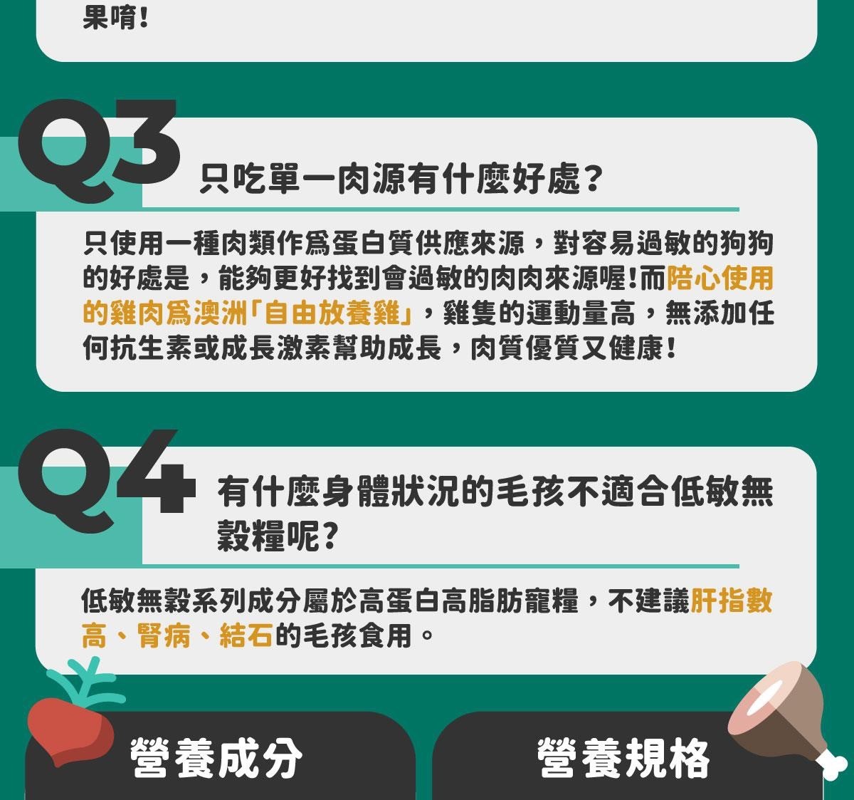 1.不含黃豆玉米小麥等高過敏源物質