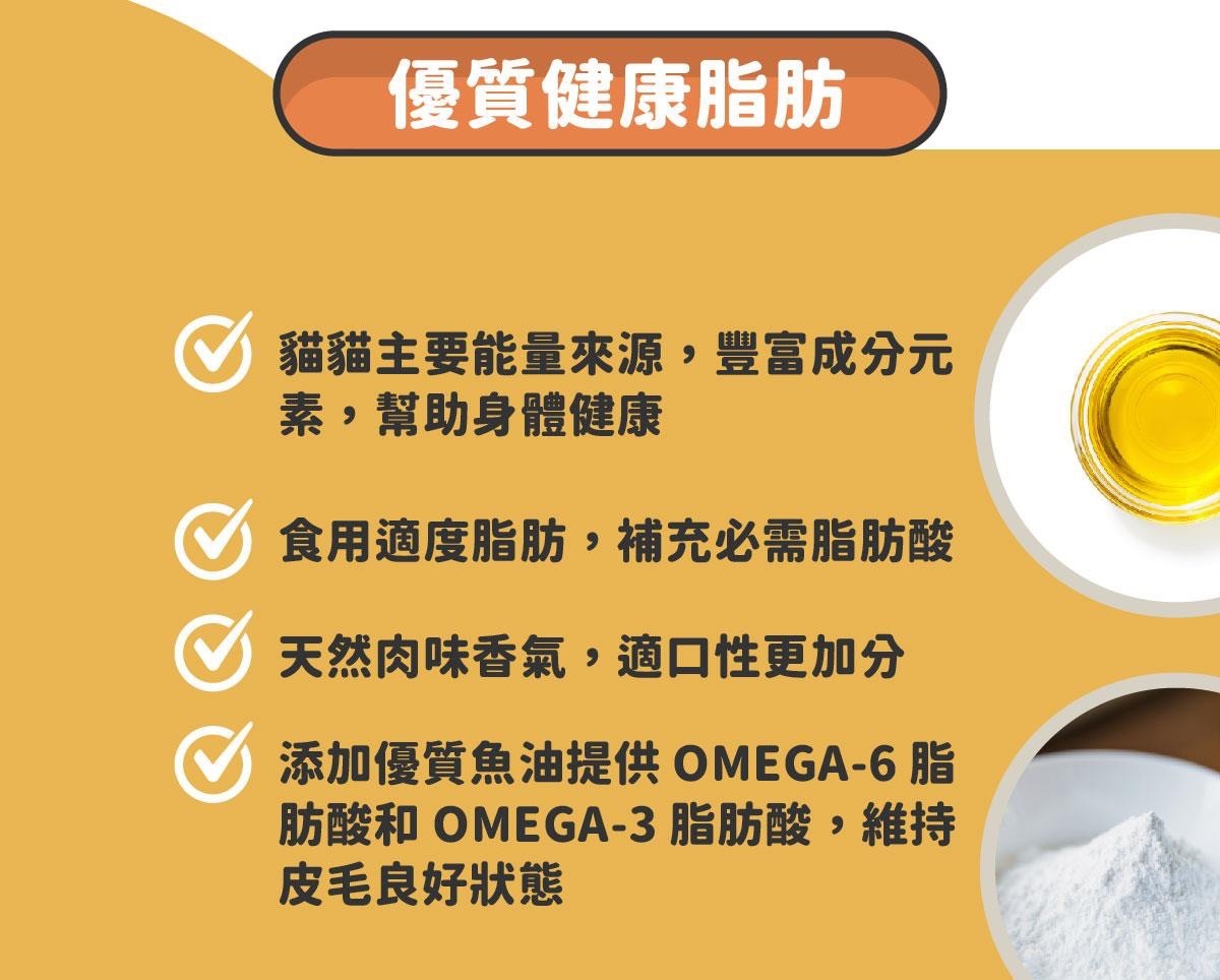 3.添加優質魚油提供omega-6脂肪酸和omega-3脂肪酸,維持皮毛良好狀態。