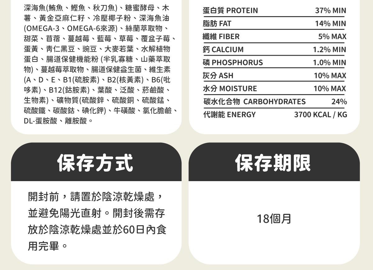 1.不含黃豆玉米小麥等高過敏源物質。